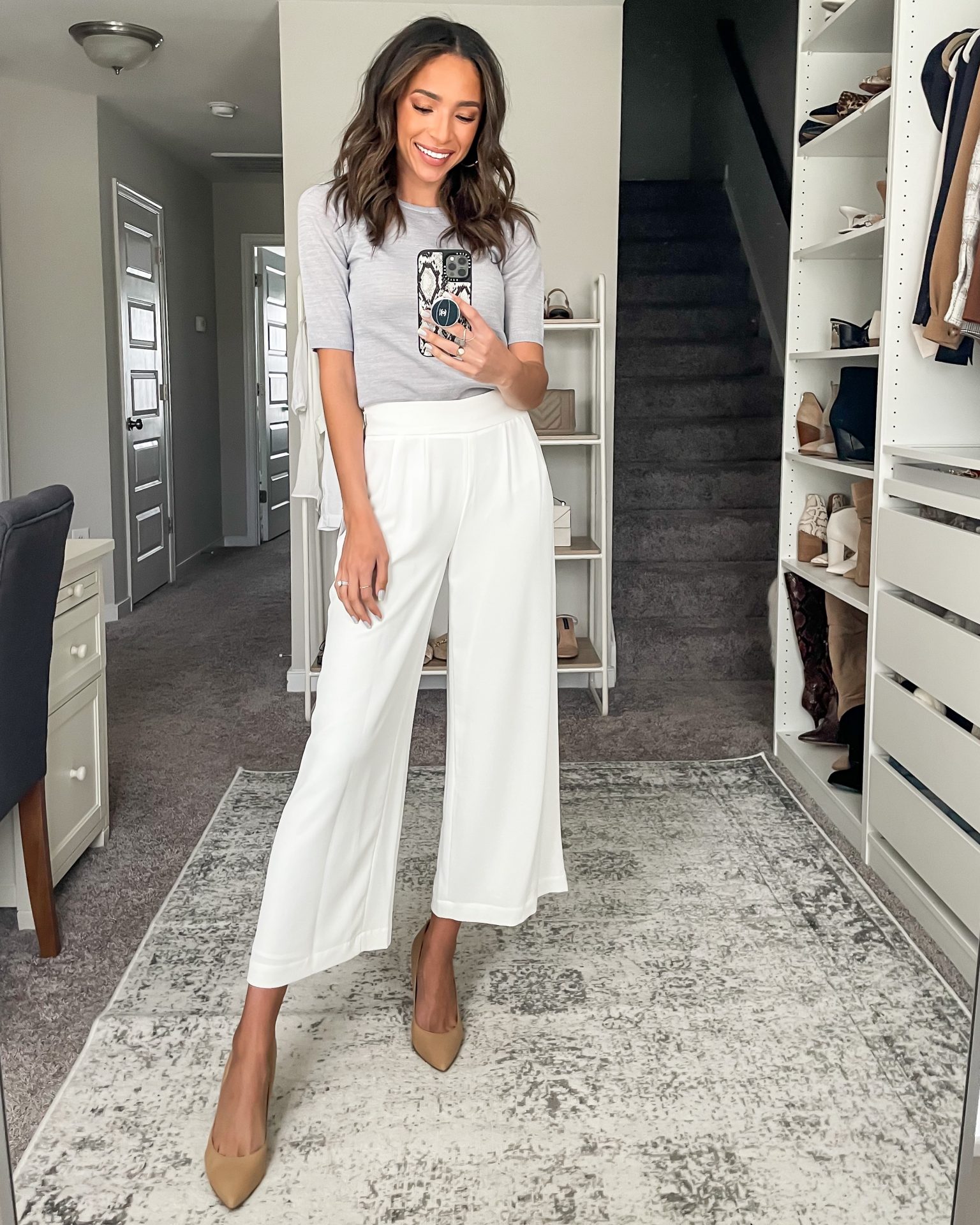These cropped trousers are affordable and super flattering! I love these for work but you can totally dress them down with a t-shirt and sneakers! Pants run slightly large – size down one.