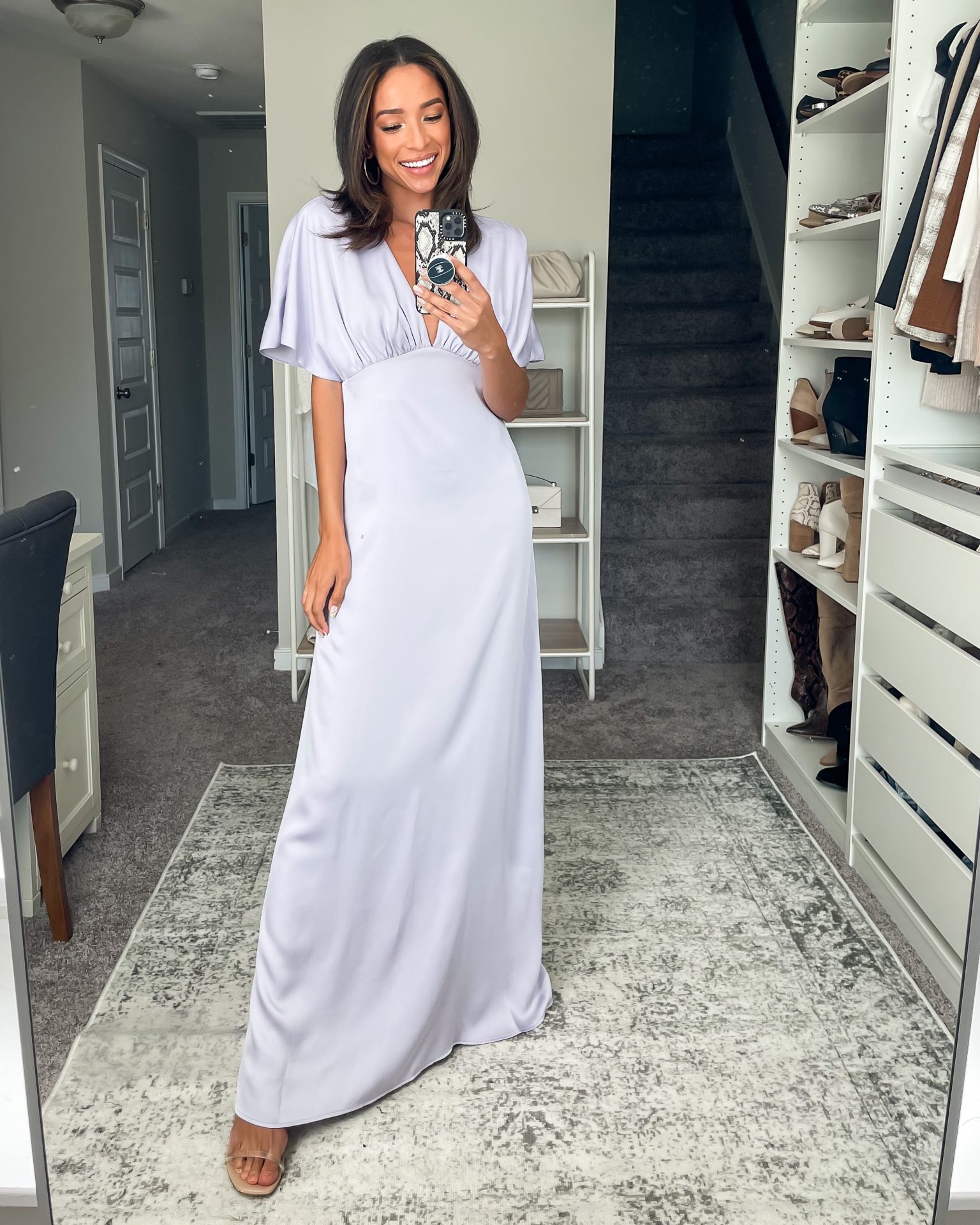 Outfit details: Dress (XS) || Fit runs a little big up top and the satin material clings so I recommend Spanx underneath