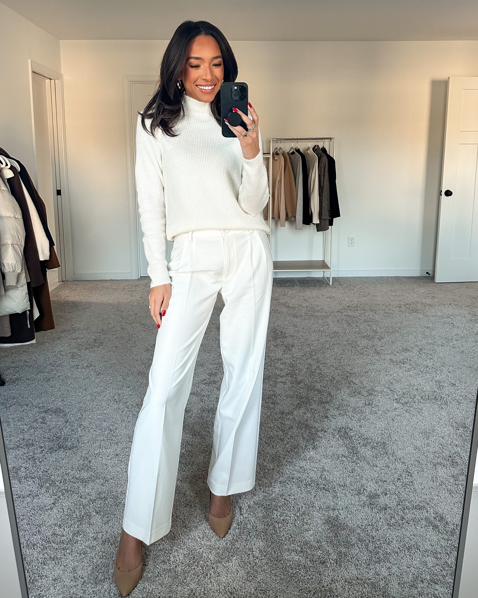 One of my go-to outfit formulas this time of year is monochrome winter white. It looks luxe, chic, and it’s incredibly easy to achieve. I love playing with accessories and outerwear to make the outfit feel new and fresh every time I wear it. Today I’m sharing an affordable winter white work outfit from Nordstrom. It is the perfect base for creating effortlessly chic outfits all season long.